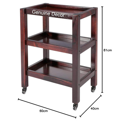ODEJIA 3-Tier Sheesham Wood Bar Trolley - Midcentury Modern Mahogany