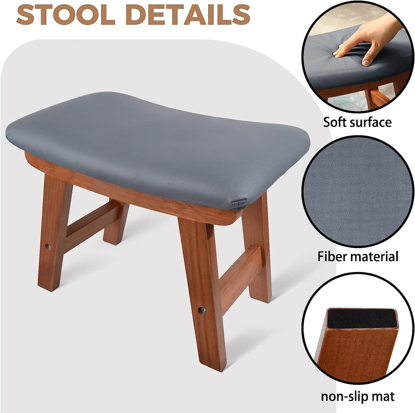 - Foot Stool Material: Stool legs are made of solid wood, and the use of curved structure design so that the small foot stool can withstand the weight of 400lb, very strong and durable.