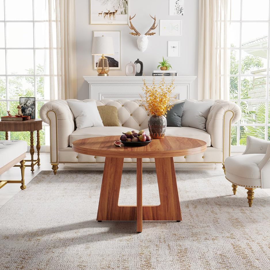 - Compact design with dimensions of 31.4" L x 31.4" W x 20" H, this round living room table is just the proper size to hold drinks, books, vases, etc.