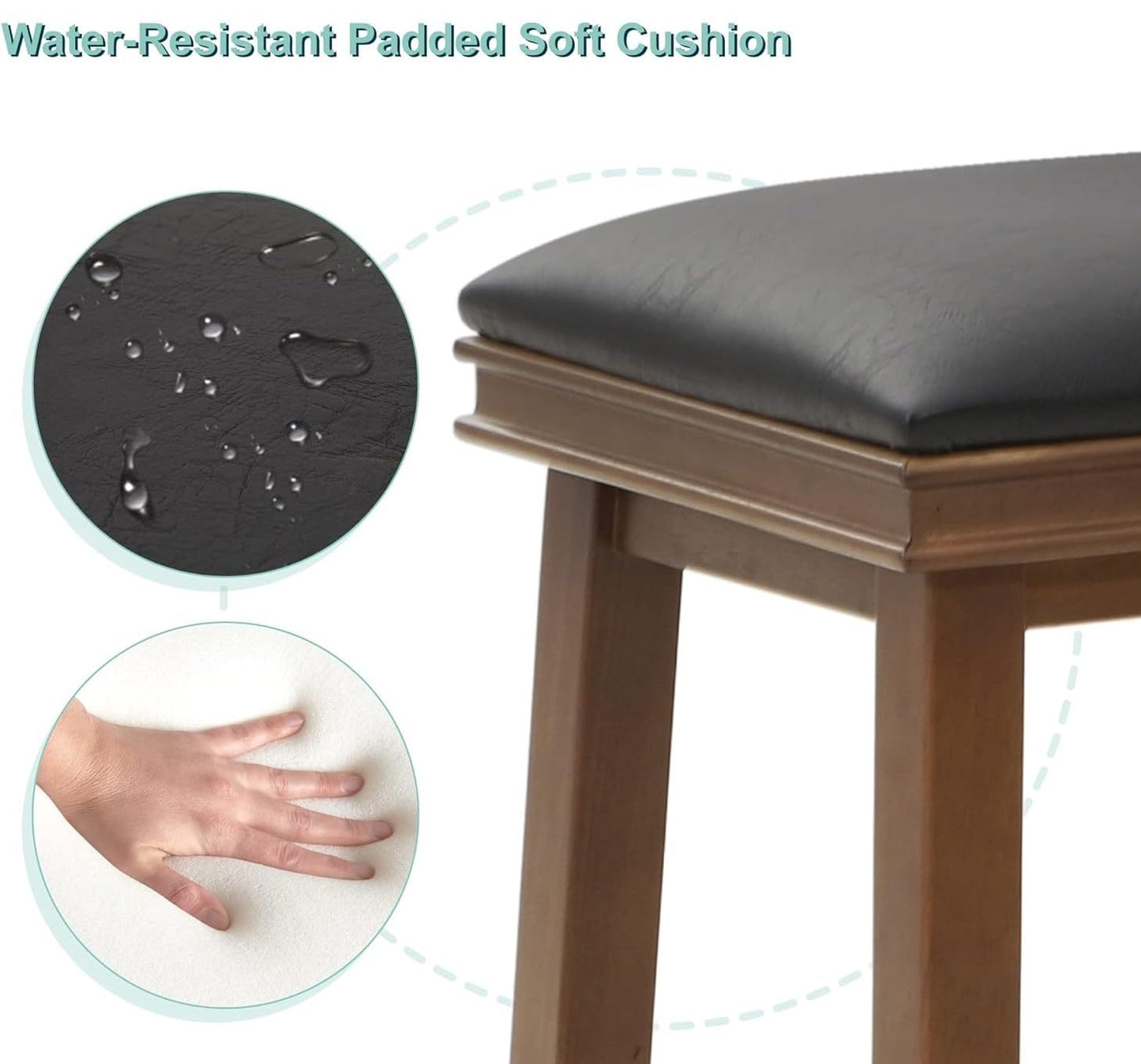 ODEJIA Solid Sheesham Bar Stools Set of 2 for Kitchen Counter Height Classic Barstools Faux Leather Farmhouse Upholstered Stools for 34"-38" Island, Black Cushion & Dark Brown Legs (Set of 2)