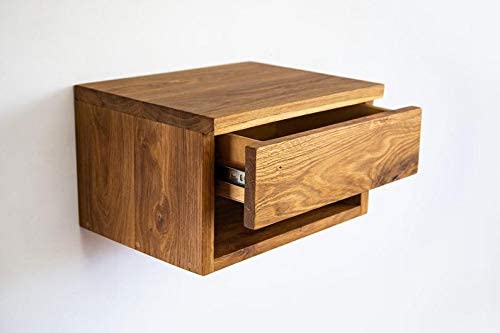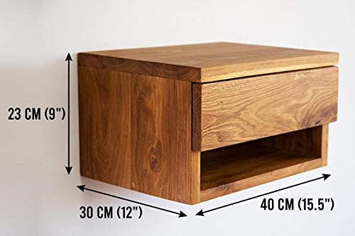 ODEJIA Walnut Floating Nightstand with Drawer - Mid Century Modern Bedside Table