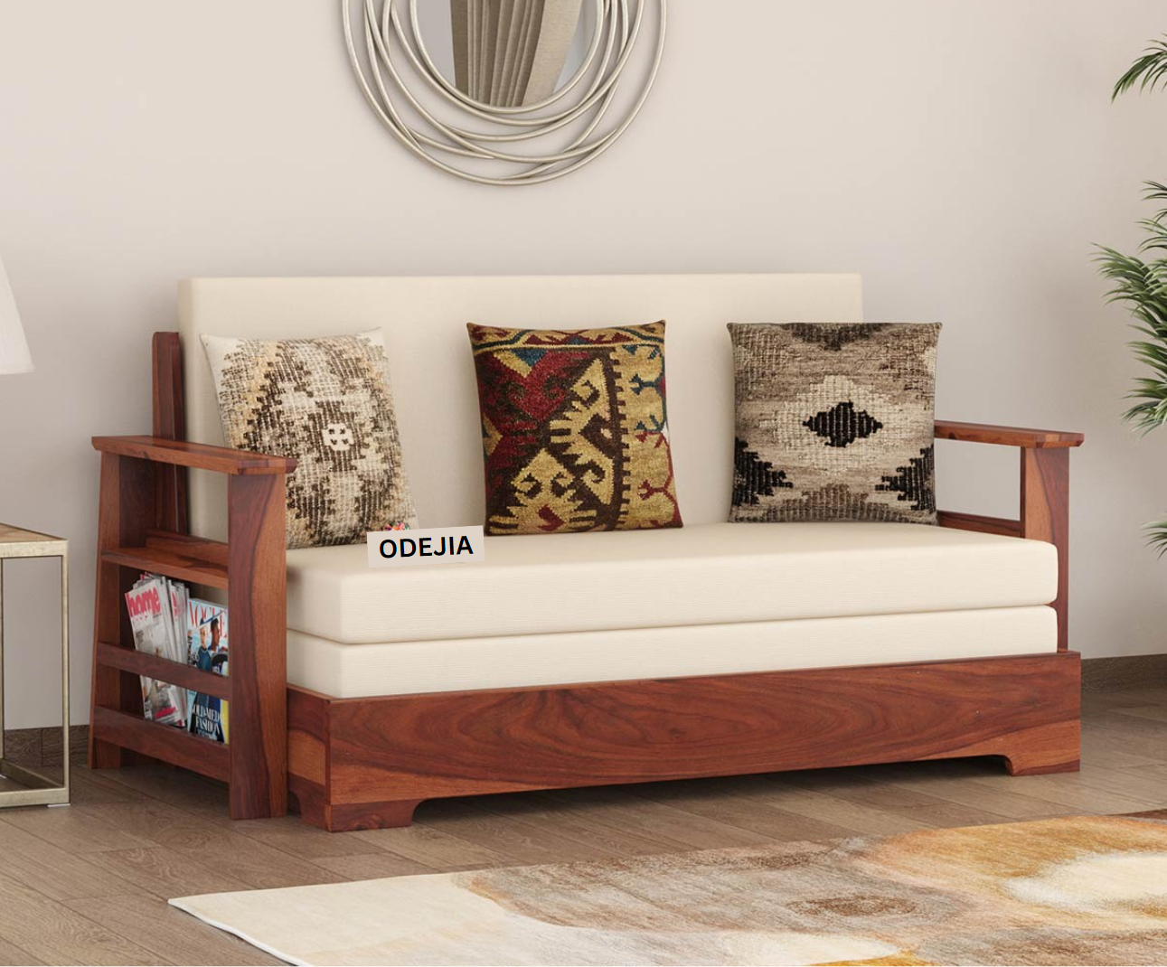 ODEJIA Wooden Queen Size Sheesham Wood Sofa Cum Bed (Honey Finish) is a versatile, space-saving furniture piece that serves both as a comfortable bed and an elegant sofa. Crafted from premium Sheesham wood and finished with a rich honey tone, this sofa cum bed brings natural beauty and functional design to any home. Ideal for modern living rooms and compact spaces, this product offers durability, style, and multi-functionality.